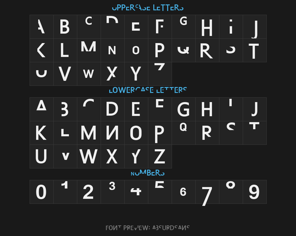 absurdsans is a font file with a size of 0.03 MB. The full font name is Absurdsans, Version 1.000 2012 initial release version. It contains 101 characters, supports 8 Chinese characters. The copyright belongs to Absurdsans. absurdsans font is available for free download, but commercial use requires confirmation on the Absurdsans official website whether it's free for commercial use.