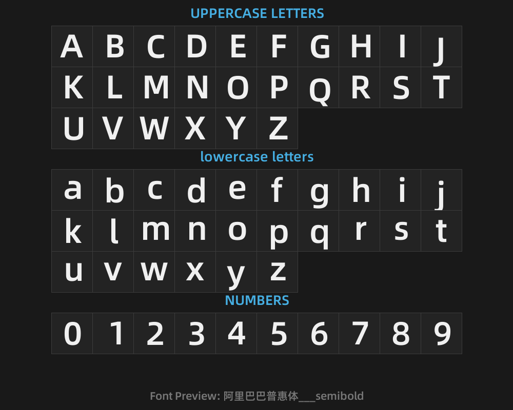 | Version number | AlibabaPuHuiTi_3_75_SemiBold |