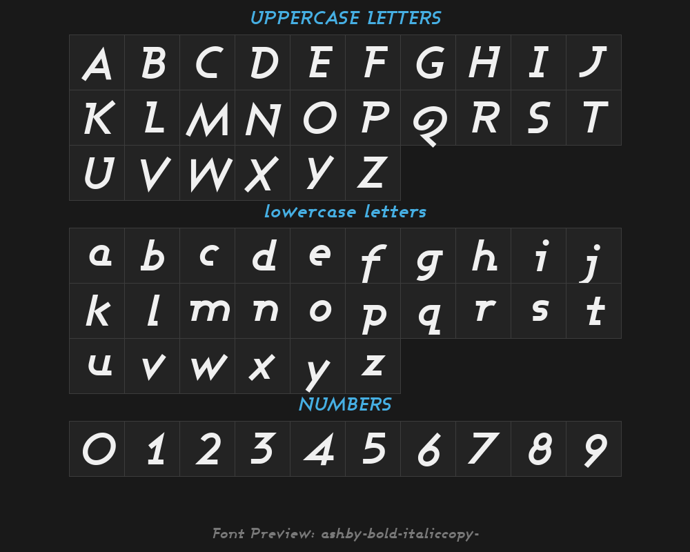 | AboutFont | RobbyWoodard Ashby Bold Italic 2001 |