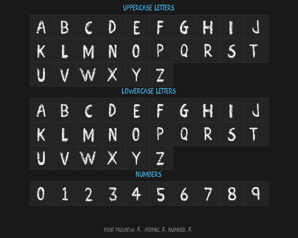 atomic-number- is a font file with a size of 0.22 MB. The full font name is Atomic Number, Version 1.00 February 9, 2013, initial release version. It contains 194 characters, supports 8 Chinese characters. The copyright belongs to Atomic Number. atomic-number- font is available for free download, but commercial use requires confirmation on the Atomic Number official website whether it's free for commercial use.