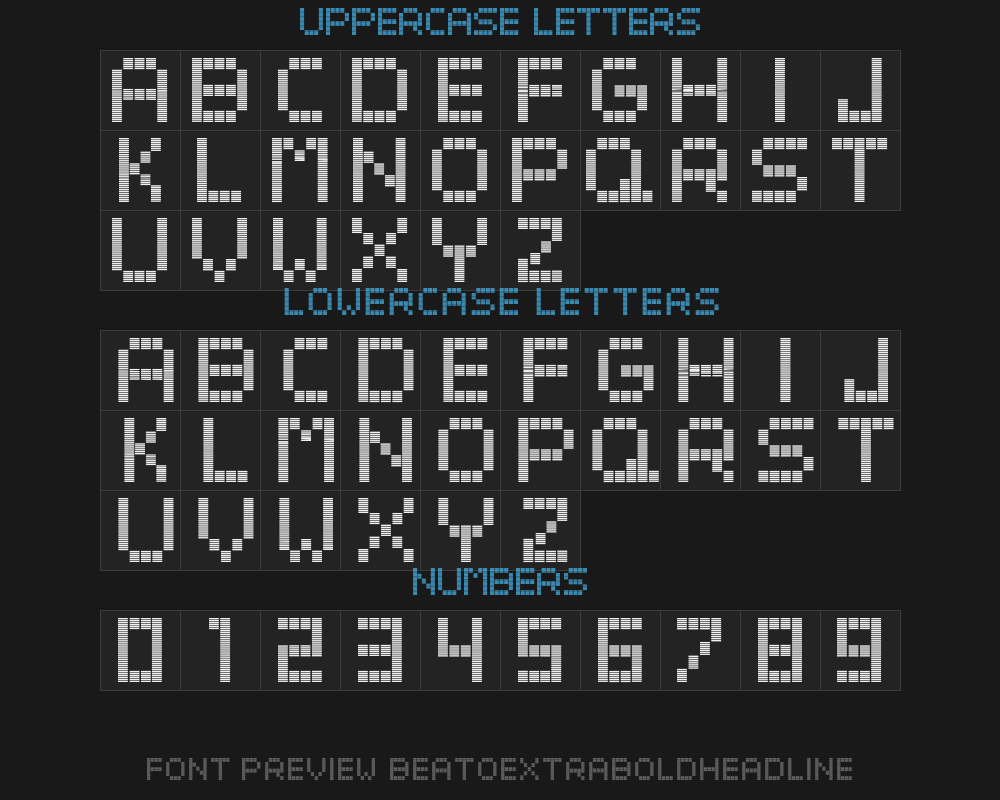 | Font description | Beato ExtraBold Headline is a font by PYRS Fontlab Ltd. Made with FontLab, designed by RAVI KUMAR in 2013. |