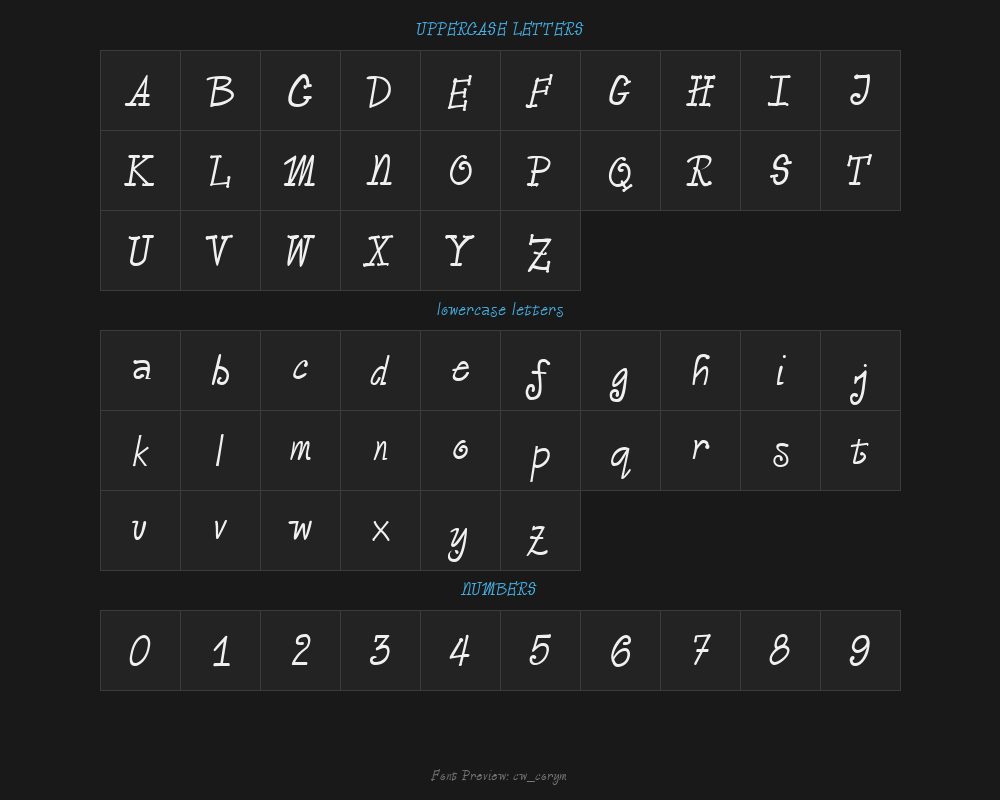 cw_corym is a font file with a size of 0.05 MB. The full font name is Cory Medium, 1.0 Wed Mar 24 20 06 56 1993 version. It contains 232 characters, supports 8 Chinese characters. The copyright belongs to Cory. cw_corym font is available for free download, but commercial use requires confirmation on the Cory official website whether it's free for commercial use.