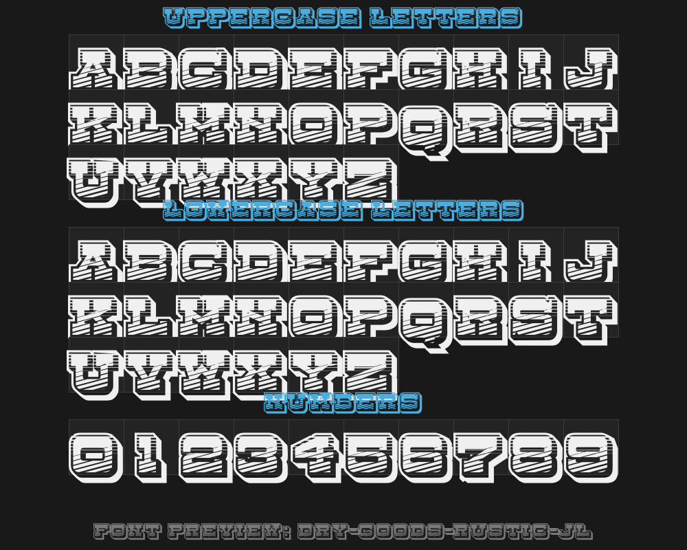 dry-goods-rustic-jl is a font file with a size of 0.05 MB. The full font name is Dry Goods Rustic JL, 1.00 version. It contains 93 characters, supports 8 Chinese characters. The copyright belongs to Dry Goods Rustic JL. dry-goods-rustic-jl font is available for free download, but commercial use requires confirmation on the Dry Goods Rustic JL official website whether it's free for commercial use.