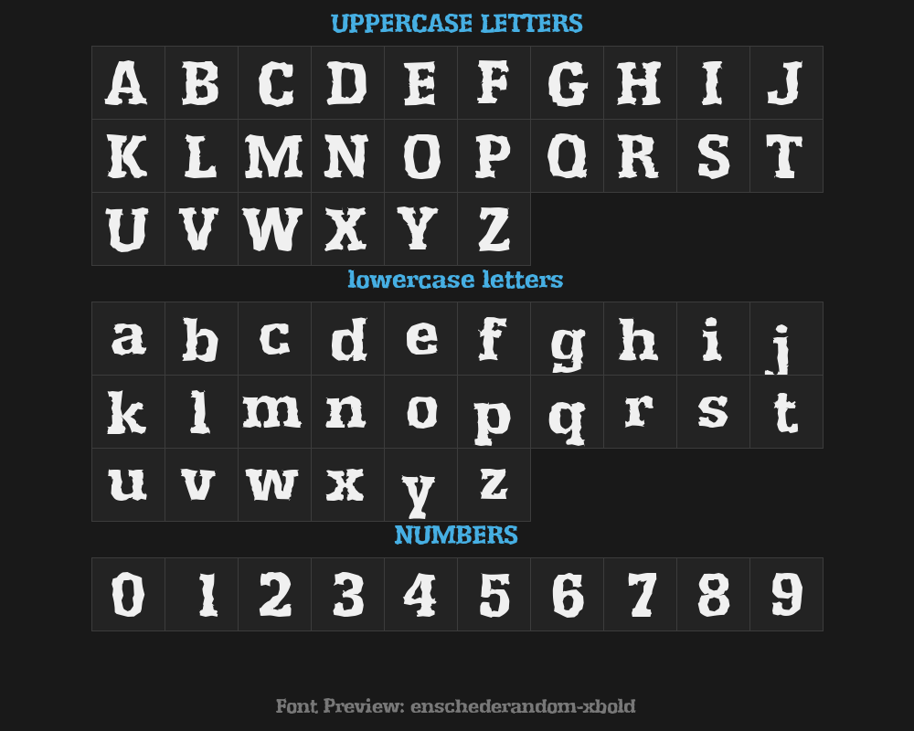 | About font family | EnschedeRandom-Xbold-Regular |