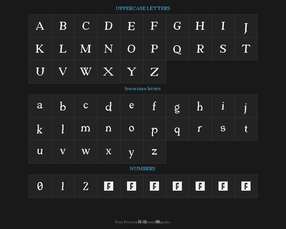 | Font description | “fs jenson 1” was built with FontStruct |