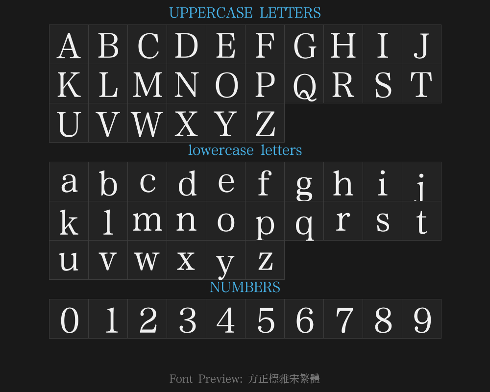 | AboutFont | Founder, Fang Zheng Biao Ya Song Traditional Chinese Regular |