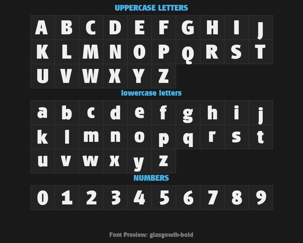 glasgowlh-bold is a font file with a size of 0.05 MB. The full font name is GlasgowLH Bold, Altsys Fontographer 3.5 9 23 93 version. It contains 208 characters, supports 8 Chinese characters. The copyright belongs to GlasgowLH. glasgowlh-bold font is available for free download, but commercial use requires confirmation on the GlasgowLH official website whether it's free for commercial use.