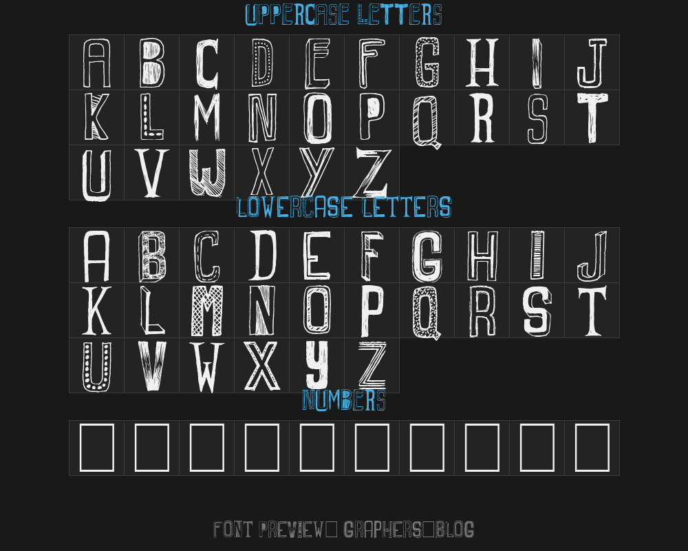 graphers-blog is a font file with a size of 0.16 MB. The full font name is Graphers Blog, 1.0 version. It contains 55 characters, supports 8 Chinese characters. The copyright belongs to Graphers Blog. graphers-blog font is available for free download, but commercial use requires confirmation on the Graphers Blog official website whether it's free for commercial use.