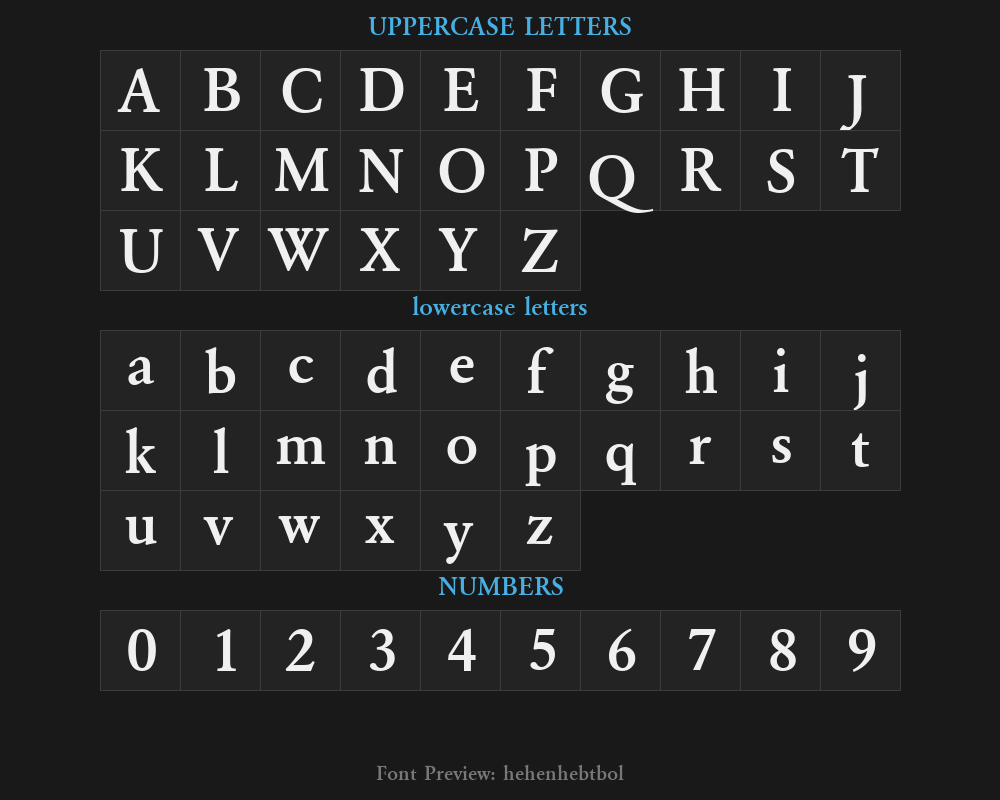 hehenhebtbol is a font file with a size of 0.06 MB. The full font name is HehenHebTBol, Version 001.005 version. It contains 170 characters, supports 8 Chinese characters. The copyright belongs to HehenHebTBol. hehenhebtbol font is available for free download, but commercial use requires confirmation on the HehenHebTBol official website whether it's free for commercial use.