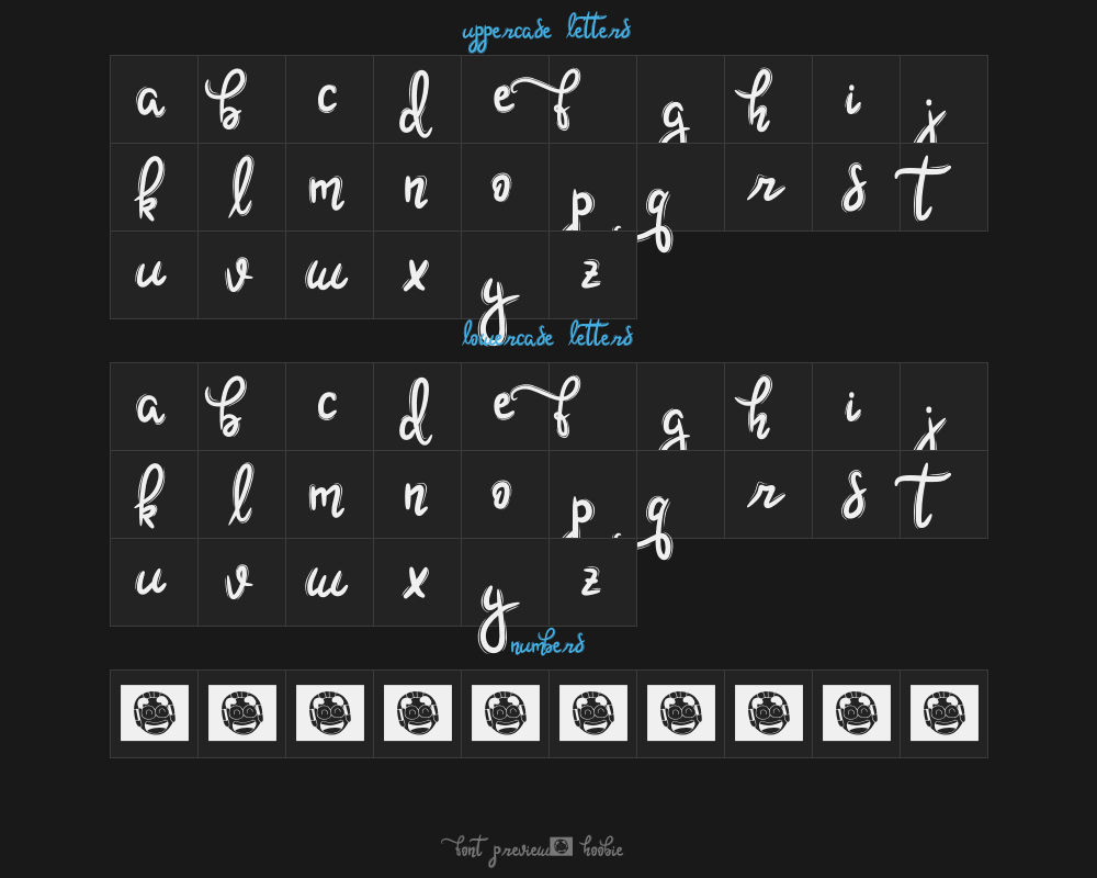 hoobie is a font file with a size of 0.07 MB. The full font name is Hoobie, Version 1.0 version. It contains 60 characters, supports 8 Chinese characters. The copyright belongs to Hoobie. hoobie font is available for free download, but commercial use requires confirmation on the Hoobie official website whether it's free for commercial use.