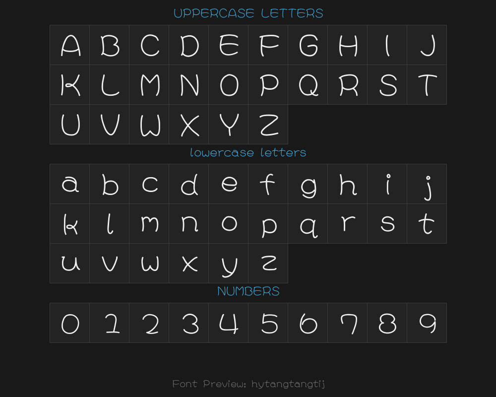 hytangtangtij is a font file with a size of 5.47 MB. The full font name is HYTangTangTiJ Regular, Version 5.00 version. It contains 7911 characters, supports 6763 Chinese characters. The copyright belongs to Hanyi Sugar is simple. hytangtangtij font is available for free download, but commercial use requires confirmation on the Hanyi Sugar is simple official website whether it's free for commercial use.