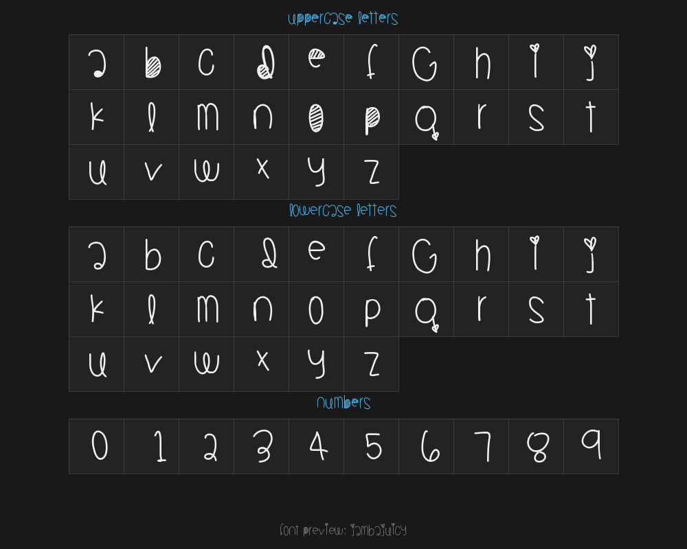 jambajuicy is a font file with a size of 0.03 MB. The full font name is JambaJuicy, Version 001.000 version. It contains 100 characters, supports 8 Chinese characters. The copyright belongs to JambaJuicy. jambajuicy font is available for free download, but commercial use requires confirmation on the JambaJuicy official website whether it's free for commercial use.