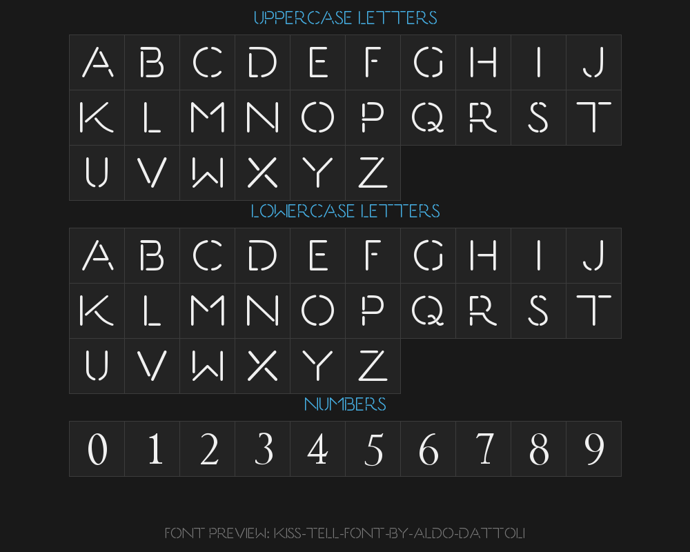 | PostScript name | Kiss&TellFontByAldoDattoli |