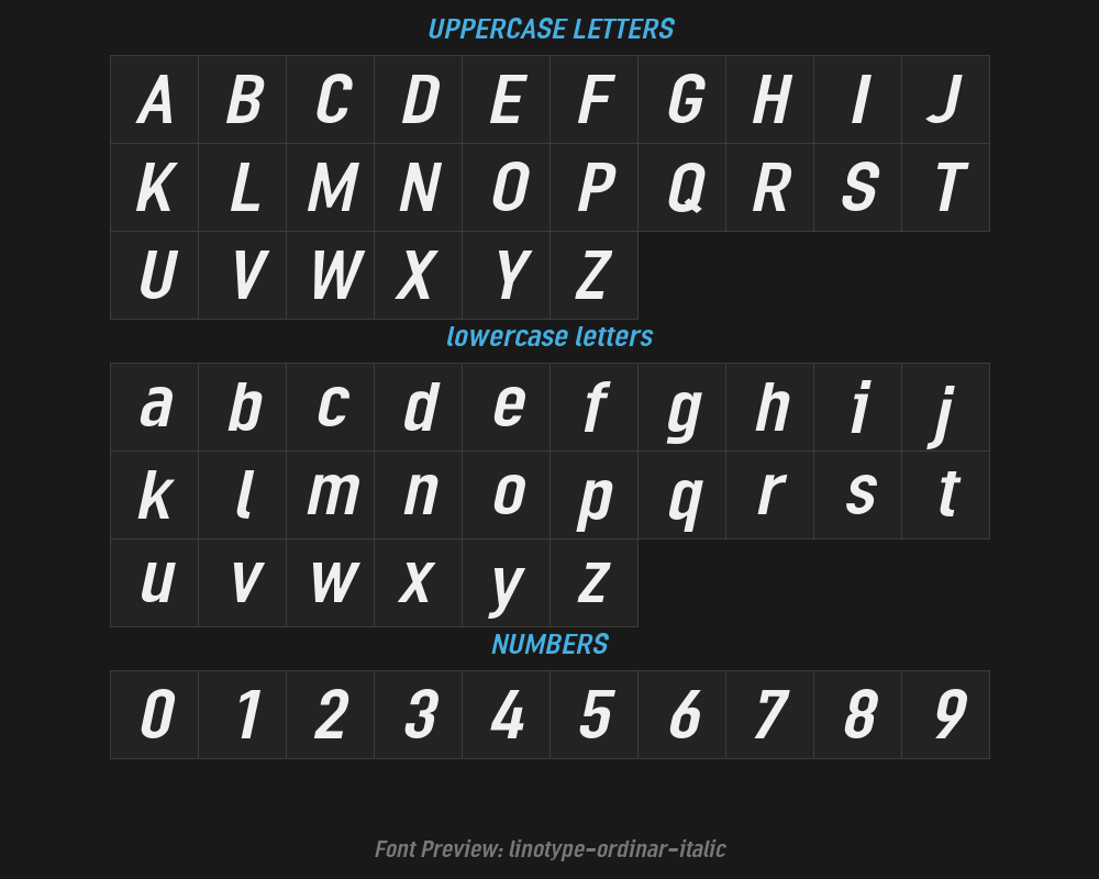 linotype-ordinar-italicFont details