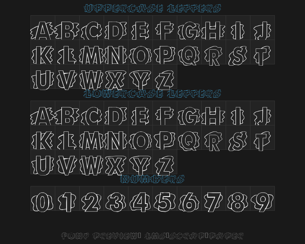 lms-scrap-paper is a font file with a size of 0.07 MB. The full font name is LMS Scrap Paper, Macromedia Fontographer 4.1 6 23 2002 version. It contains 63 characters, supports 8 Chinese characters. The copyright belongs to LMS Scrap Paper. lms-scrap-paper font is available for free download, but commercial use requires confirmation on the LMS Scrap Paper official website whether it's free for commercial use.