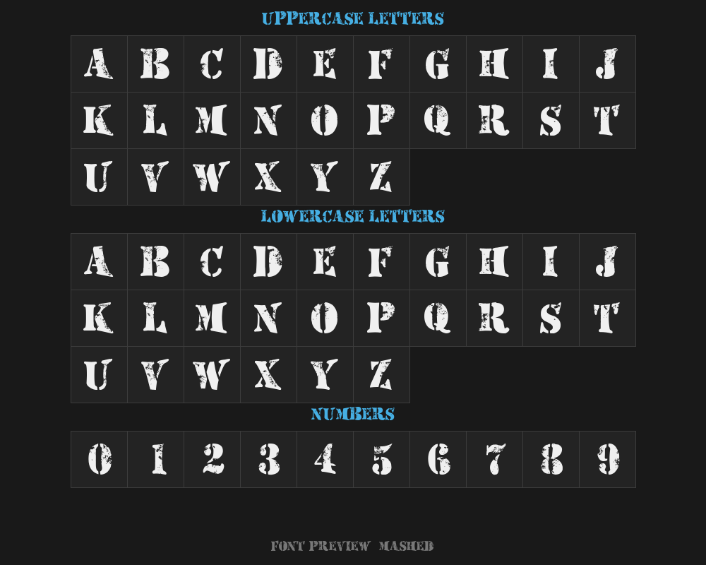 mashed is a font file with a size of 0.15 MB. The full font name is Mashed, Version 1.00 April 30, 2012, initial release version. It contains 240 characters, supports 8 Chinese characters. The copyright belongs to Mashed. mashed font is available for free download, but commercial use requires confirmation on the Mashed official website whether it's free for commercial use.