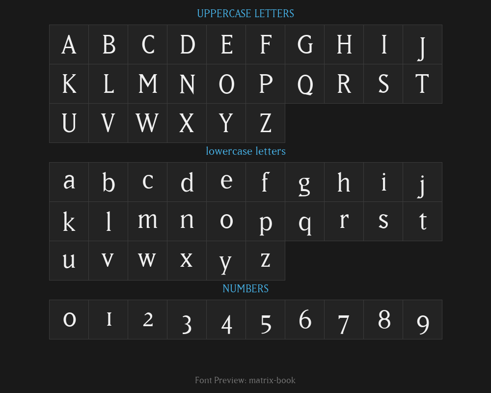 Overview:matrix-bookFont