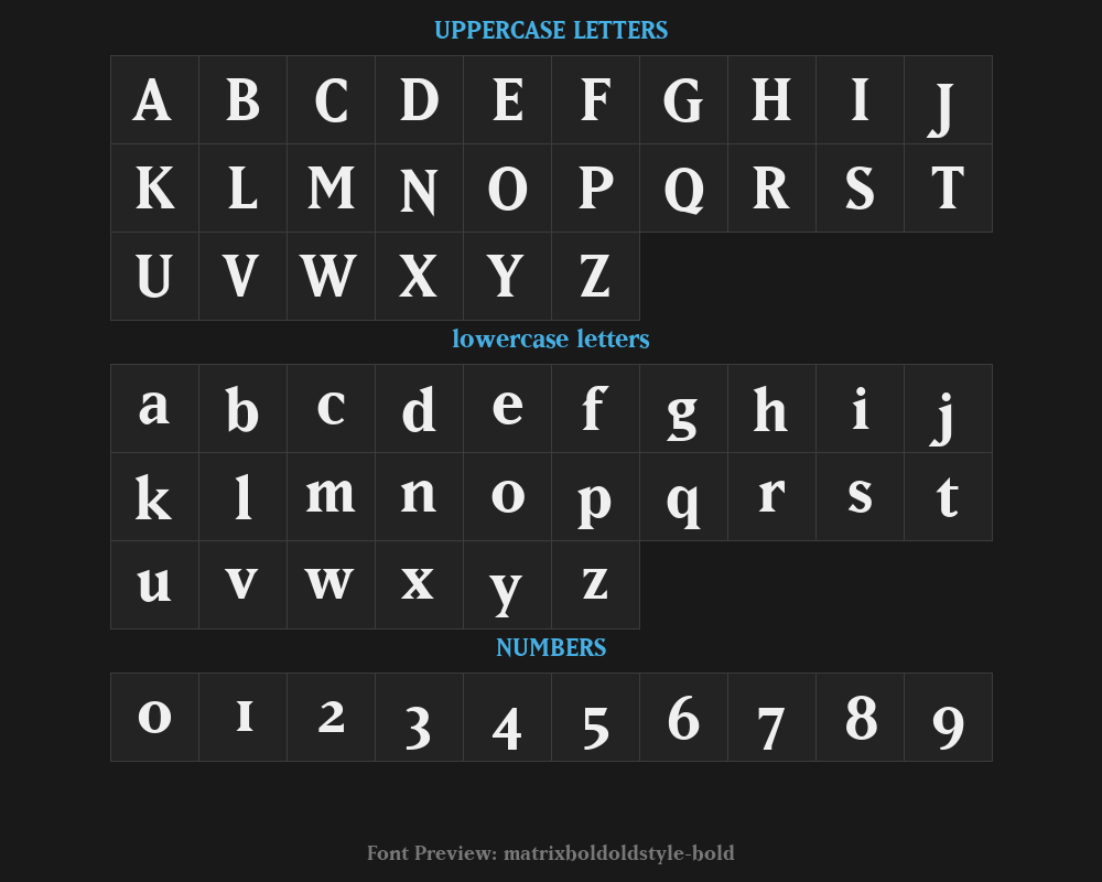 | Unique identifier | Altsys Fontographer 3.5 MatrixBoldOldstyle Bold |