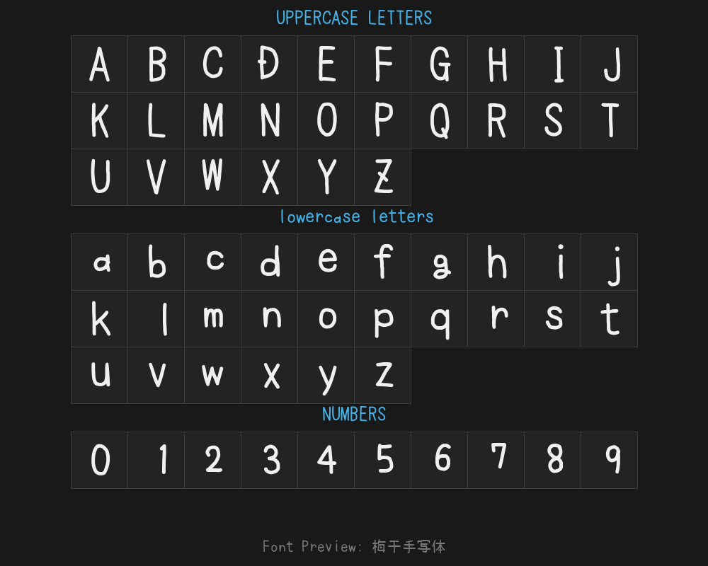 Mei Gan Handwritten type is a font file with a size of 4.90 MB. The full font name is umeboshi, Version 1.00 version. It contains 14963 characters, supports 12204 Chinese characters. The copyright belongs to Dried plums フォント. Mei Gan Handwritten type font is available for free download, but commercial use requires confirmation on the Dried plums フォント official website whether it's free for commercial use.