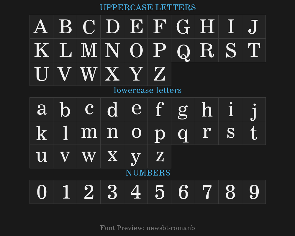 news705bt-romanb is a font file with a size of 0.03 MB. The full font name is News705BT-RomanB, 003.001 version. It contains 229 characters, supports 8 Chinese characters. The copyright belongs to News 705. news705bt-romanb font is available for free download, but commercial use requires confirmation on the News 705 official website whether it's free for commercial use.
