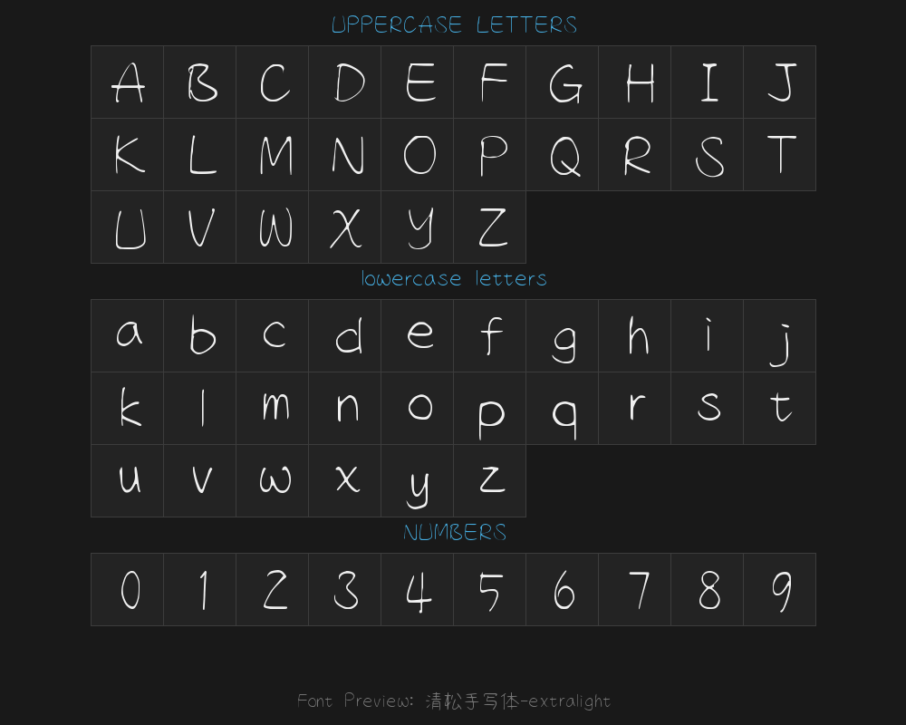 Qingsong Handwriting 1-extralightFont details