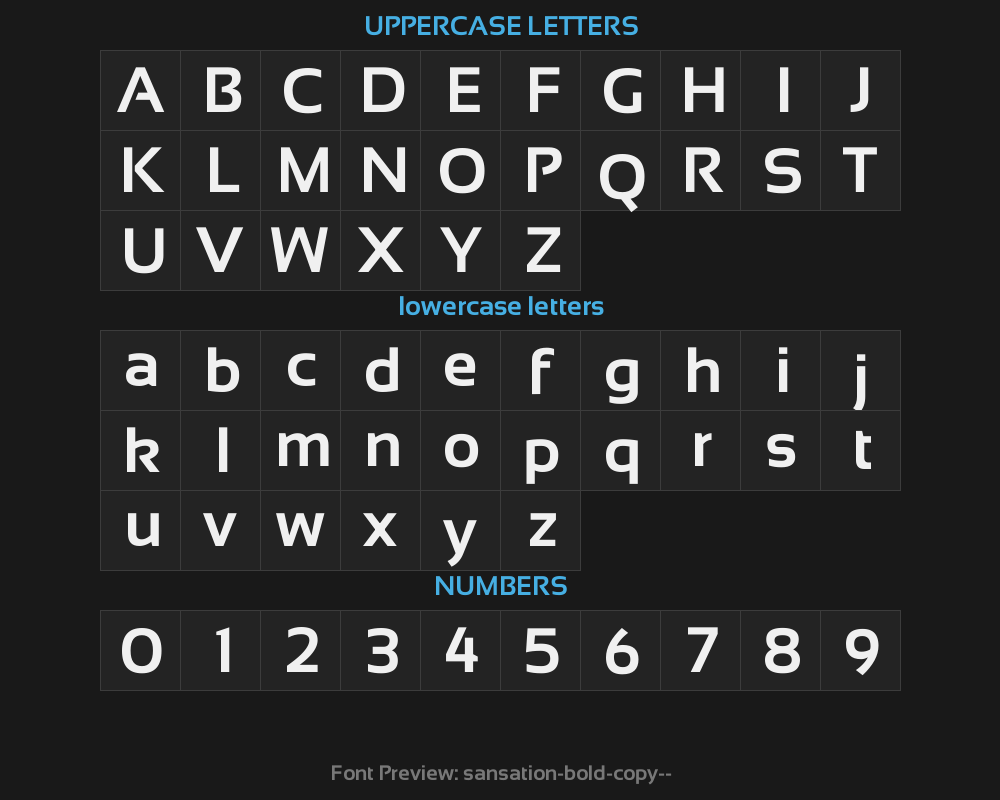 sansation-bold-copy-1- is a font file with a size of 0.02 MB. The full font name is Sansation Bold, Version 1.2 version. It contains 267 characters, supports 8 Chinese characters. The copyright belongs to Sansation. sansation-bold-copy-1- font is available for free download, but commercial use requires confirmation on the Sansation official website whether it's free for commercial use.
