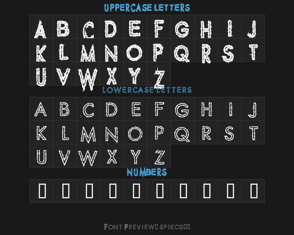 spikcg__ is a font file with a size of 0.12 MB. The full font name is Spike Crumb Geiger, Macromedia Fontographer 4.1.2 5 5 97 version. It contains 54 characters, supports 8 Chinese characters. The copyright belongs to Spike Crumb Geiger. spikcg__ font is available for free download, but commercial use requires confirmation on the Spike Crumb Geiger official website whether it's free for commercial use.