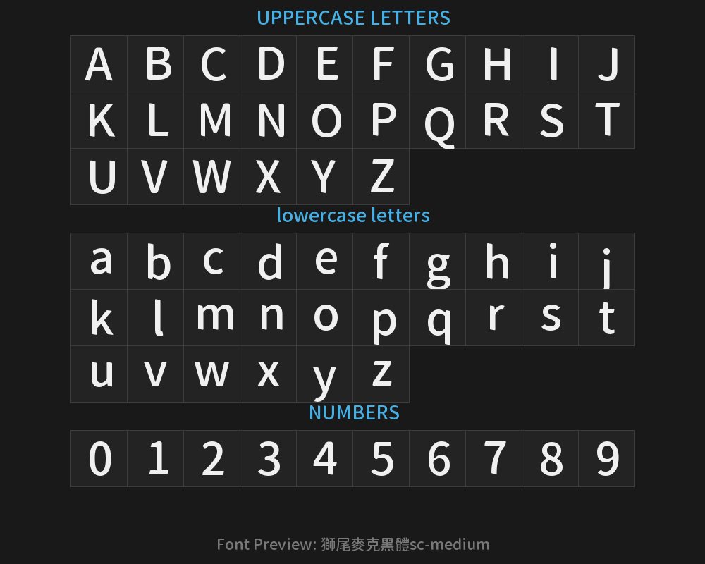 | PostScript name | SweiMarkerSansCJKsc-Medium |