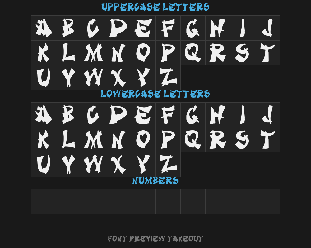 takeout is a font file with a size of 0.02 MB. The full font name is Takeout, 1.9325 version. It contains 229 characters, supports 8 Chinese characters. The copyright belongs to Takeout. takeout font is available for free download, but commercial use requires confirmation on the Takeout official website whether it's free for commercial use.