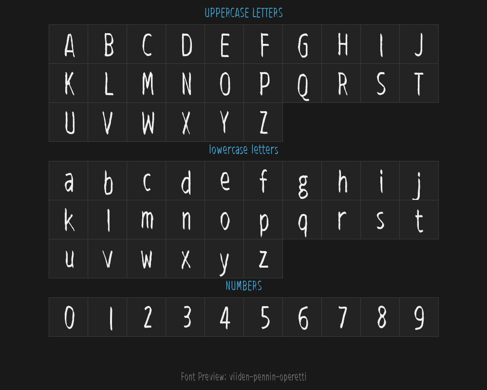 viiden-pennin-operetti is a font file with a size of 0.12 MB. The full font name is Viiden pennin operetti, Version 1.00 December 7, 2015, initial release version. It contains 205 characters, supports 8 Chinese characters. The copyright belongs to Viiden pennin operetti. viiden-pennin-operetti font is available for free download, but commercial use requires confirmation on the Viiden pennin operetti official website whether it's free for commercial use.